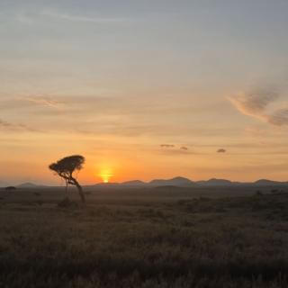 Hear the beautiful bird sounds chirping away as the sun rises over the savannah.
