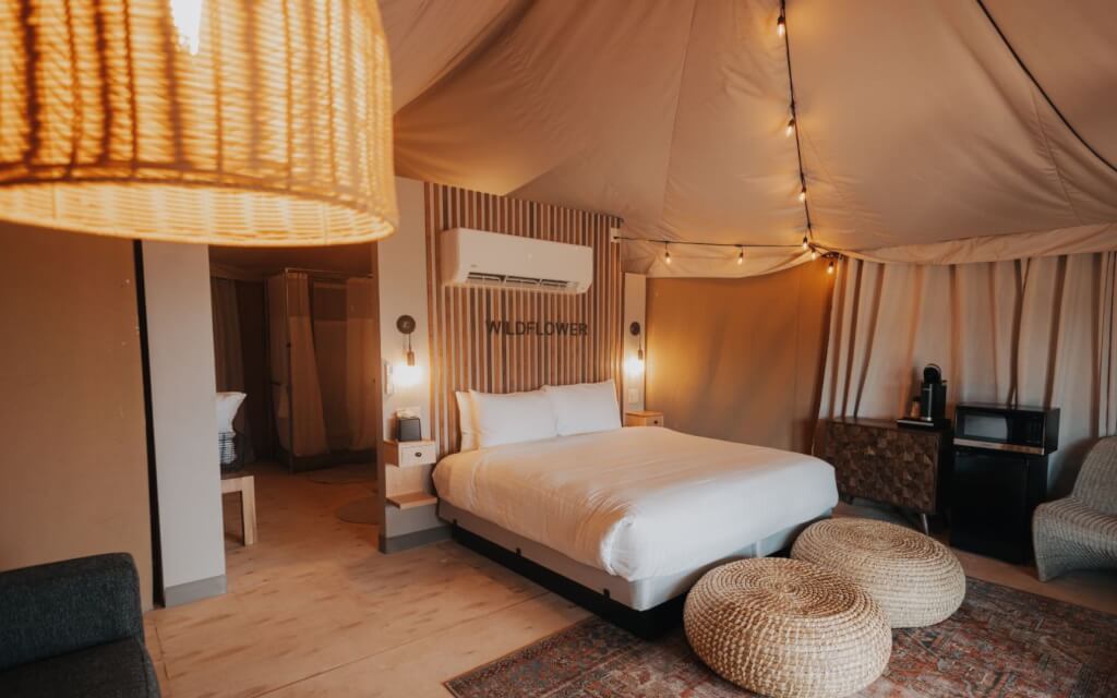 Zion Wildflower Resort is a brand new glamping destination just minutes away from the entrance to Zion National Park. Whether you’re a glamping expert or brand new to the world of glamorous camping, we’re thrilled to have you with us. Don’t let the word camping scare you away, however! Most of our luxurious accommodations come with amenities like air conditioning, featherbeds, and modern bathrooms. We are a unique property and aim to provide guests with an unforgettable experience, so prepare to be amazed!