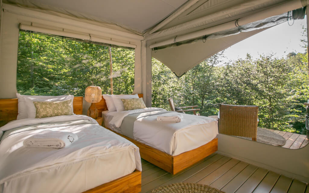 Ašuma covers 10 hectares and is nestled in a serene valley surrounded by mountain peaks and a wild beech forest within the boundaries of Lovcen National Park at a height of 1000m above sea level. You will be invited to stay in bespoke luxury tents. Each of the tents has a private entrance and its own outdoor space. Tents are fully equipped with authentic furniture combined with Siberian larch flooring. Bathrooms are attached and are equipped with all necessary facilities.