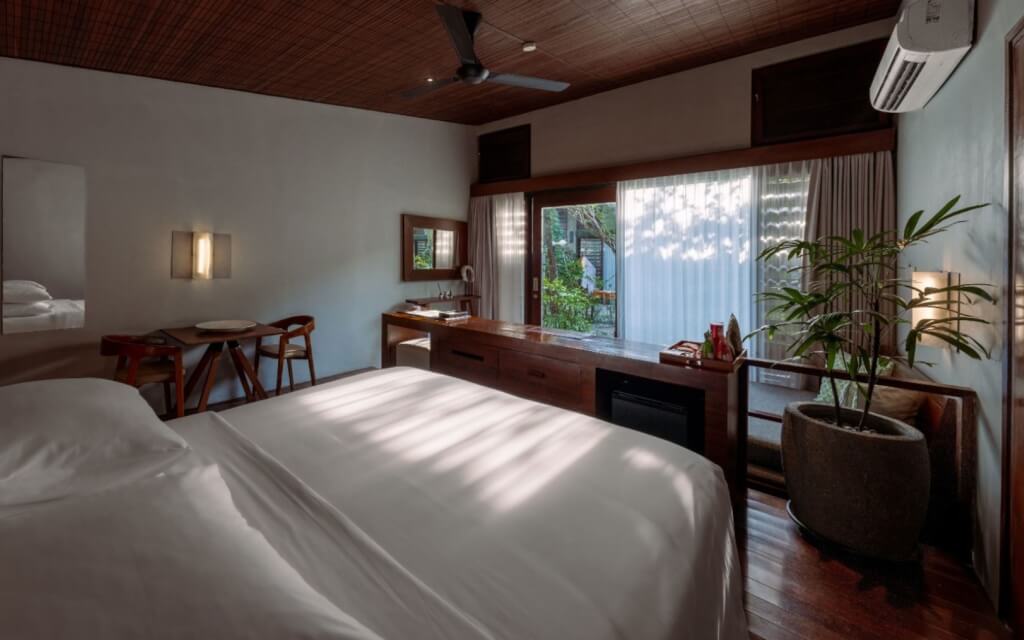 Your stay includes beautifully appointed resort-style twin sharing rooms, designed for comfort and connection. Each room features serene décor inspired by Balinese tradition, with two cozy beds, ensuite bathrooms, and tranquil garden or ocean views. Ideal for friends or solo travelers open to sharing, the space encourages rest, reflection, and a sense of community throughout your retreat.