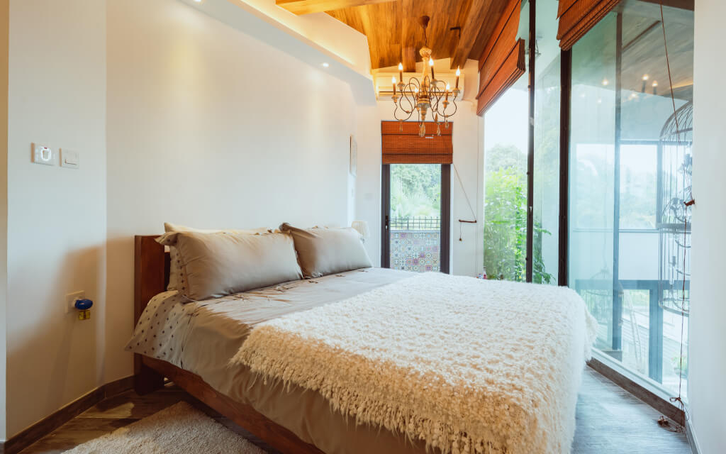 After a day spent in your meditative and silent practices, relax and restore in your boutique-style bedroom sanctuary. Set on a secluded hilltop overlooking beautiful, serene nature in the New Territories, breathe in the fresh air and enjoy views of abundant vegetation from your room. Both villas boast five unique bedrooms with various designs, air conditioning, and beautiful en-suite bathrooms. This sanctuary lies within the province of Hong Kong yet effortlessly transports guests away from the city to restore in nature. Nourished land in the New Territories homes a rustic fruit farm located in leafy green hills where guests are enveloped in peace, solitude, and the healing energies of nature. A dreamlike retreat into bliss.
