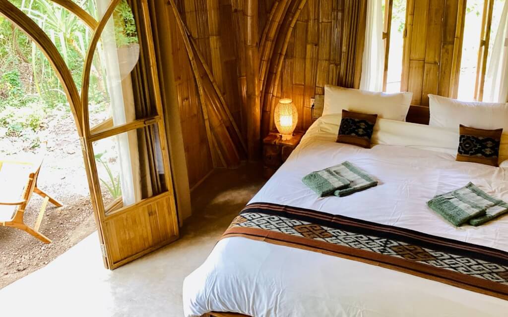 4 nights accommodation in bamboo-style cliffside rooms