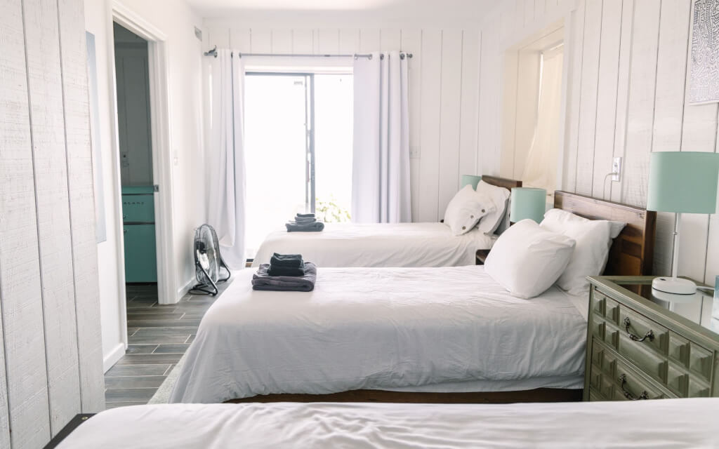 During meal times, you can choose to commune with the group or grab a plate for some quiet, reflective time. Meals are served buffet-style on the kitchen counter (pictured) at scheduled times. Guests can dine at the dining table (pictured) or, weather permitting, enjoy their meal outdoors, taking in the serene beauty of the property from any spot they choose.