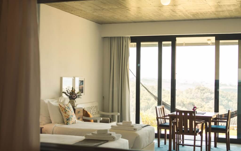 With a privileged location between the sea and the valley of Praia de São Lourenço, Quinta dos Raposeiros is located in the Saloia de Santo Isidoro region, in a welcoming, peaceful, and relaxing space, surrounded by the green trees that offer 11 hectares of nature. waiting to be explored, with footpaths allowing walks inside the property. There is also a pedestrian path to Praia de São Lourenço with an approximate duration of 20-40 minutes. Among pine trees and fruit trees, it is a privileged space to revitalize and decompress, in the quiet of the countryside, with the blue sea in the background and an enchanting surrounding landscape. With 4 Apartments and 6 Premium Double Rooms, we offer two different types of accommodation. If you want to include breakfast during your stay, it will be delivered at the scheduled time, in the comfort and convenience of your apartment or room.