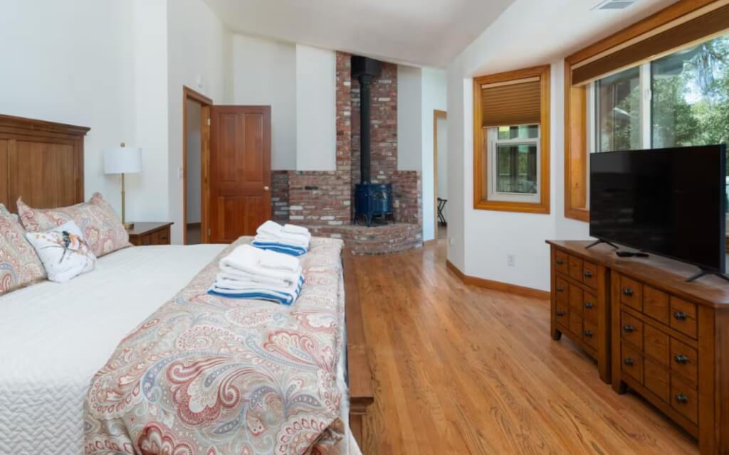 Located in a secluded haven, this 8-bedroom house provides luxury amenities for a truly one-of-a-kind stay. The serene mountain scenery sets the perfect backdrop for connecting with yourself and your co-attendees, while the crisp air naturally pulls your body and mind into deeper relaxation. Unwind in the jacuzzi or warm up by the firepit as you surround yourself with the peaceful Sierra Nevada landscape. Leave the rest of the world behind and focus on the grounding, revitalizing energy that is immediately apparent when you enter your retreat space. Step outside and immerse yourself in peaceful nature, or allow your body to melt into safety as you cozy up inside. Modern and clean rooms ensure a good night’s sleep and waking energized for your retreat experience.