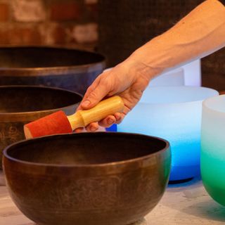 The tones of quartz crystal and Tibetan singing bowls balance each of the chakras or energy center of the body and bring each layer of the entire being into harmony with one another. They balance the physical body and synchronize the two hemispheres of the brain. Singing bowls allow old energy patterns that no longer serve us to be removed and transformed. Sound baths create a space for us to relax and enter into altered states of being, allowing us to enter into the alpha-theta optimum healing.