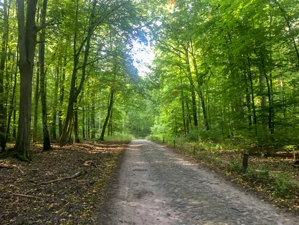 Du läufst einen Waldweg entlang und siehst am Ende des Waldweges eine Lichtung.