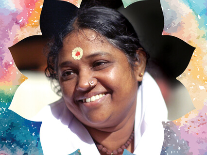 Amriteshwaryai Namaha – Salutations to the Immortal Divine Mother of the Universe, Amritanandamayi. The Resplendent Luminary Immanent in the Hearts of All Beings an in my self as well. Chant this mantra 108 times along with the music, a very auspicious practice invoking the Divine Mother.