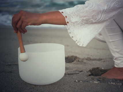 Close your eyes and imagine yourself lying on your favourite beach, the sky sapphire blue above you and the sun shining warm on your face. You can hear the sounds of the ocean ebbing and flowing gently on the golden sands. Let go of all worries and cares for a moment, and surrender into the healing vibrations of light and sound. In this recording, the sound of ocean waves is overlaid with the pure tones of Quartz Crystal Singing Bowls - calming and soothing the nervous system back into balance.