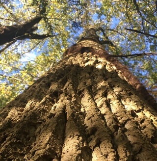 A flower staring at a tree.