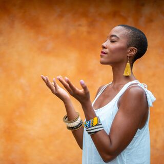 Exhale palms touch,