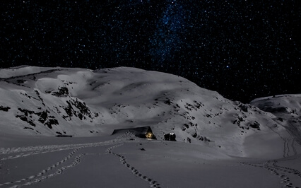 Walking towards the cabin.