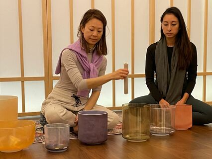 This was the third recording of Candace Cheung and I was pleasantly surprised to see that Karina Curlewis would be joining the session. Karina is a yoga instructor at Ikigai Central, and I met her during Candance's second recording. She expressed her interest in using her voice during a sound bath. Candace had large crystal bowls that had an amazingly low, warm grounding resonance. All the bowls used paired really well with Karina's amazing voice.