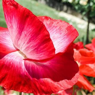 The sky is the most beautiful blue you've ever seen with just a few white puffy clouds lazing in the sky.