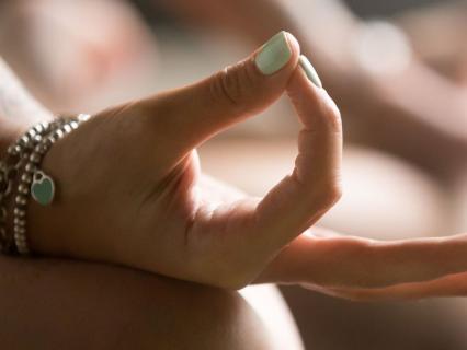 Place one hand at the heart center.