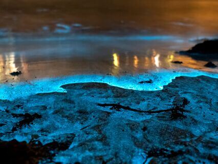 Delicately painting reflections on the gentle waves below.
