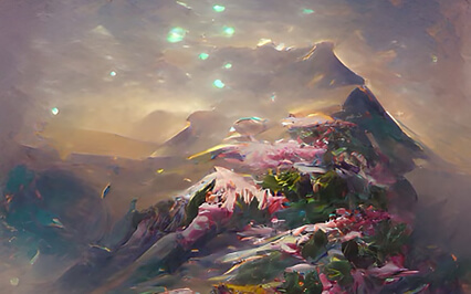 The explosive hues cast a pale and purple edge to reflect across the mountains and cliffs that surround you.