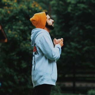 Feeling the forehead,