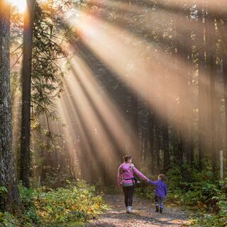 Move your gaze back to your child's eyes and imagine sending feelings of love and well-being from your heart down through your hands to rest in your baby's hands.