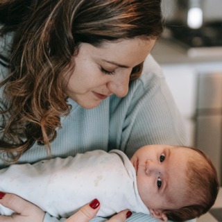 You and your mom sitting or lying down together.