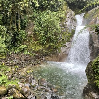 In a cave or on a mossy boulder by a forest stream.