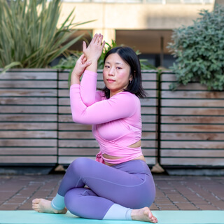 When you're ready take a deep inhale and close the eyes if that feels nice too.