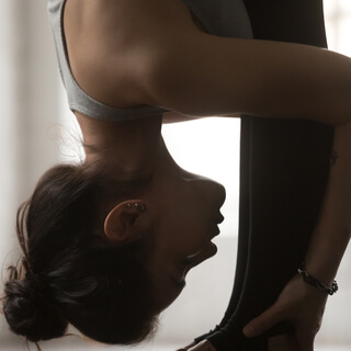 Fold over the thighs and sweep the arms down and behind us.