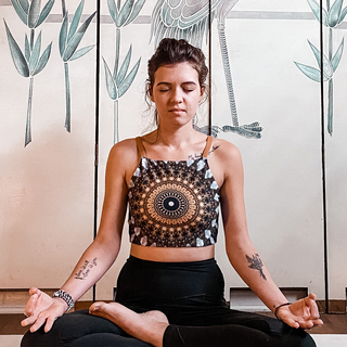 So we're just going to start in a comfortable cross-legged or any seated position really on your mat or on your cushion on the floor and then let the hands rest in the lap and let's come to sit up nice and tall.