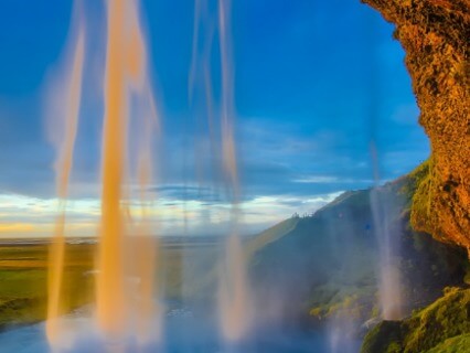 Know that you are supported and loved and one with nature When you are ready you sit up and stare out across the lake The lake is very shallow and you step out into the warm water which is lapping at your feet With each step you glide across the water towards the cascading waterfall The spray from the water falls onto your skin,