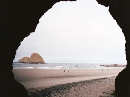 In einiger Entfernung siehst du eine Höhle im Küstengestein.