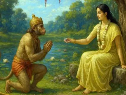 Então ela entregou a Hanuman uma joia de seu cabelo.