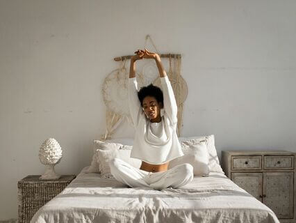 Gently wake and warm up the body while still in your bed. Instead of jumping straight out of bed in the morning, take some time to stretch out the body and warm up the joints and muscles with this simple but effective practice. This practice can be helpful if you often wake up feeling stiff and achy and moving in this mindful way will allow you to start your day right.