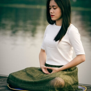 You can rest the back of the left hand in the palm of right in the lap or if you wish to roll the forefinger to root of thumb,