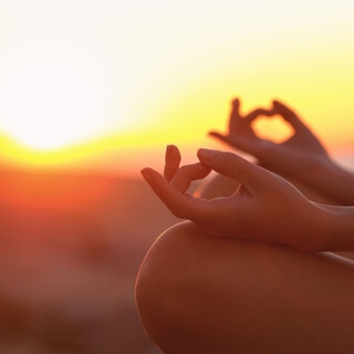 Palms face down on the thighs and knees,