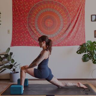 Finding a sense of spaciousness here as you inhale and grounding all the way down through your hips and your sits bones as you exhale,