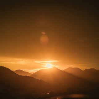 There are mountains watching the sunrise.