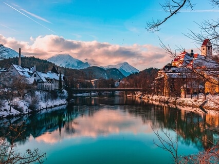 You see a beautiful lake in the middle.